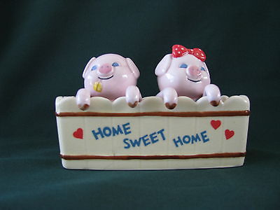 Vintage Enesco Pig Salt and Pepper Shakers w/ Holder Enesco Home Sweet Home Pigs