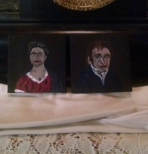 Title (ebay affiliate link): Primitive Set of Two Miniature Portraits on Canvas Folk Art Cupboard Paintings