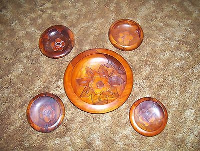 Title (ebay affiliate link): CHIPS AND NUT 5 bowl set Wood Artisan hand carved nacho peanut party serving set