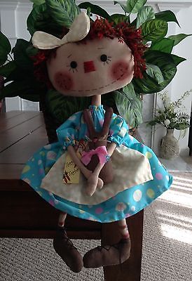 Primitive, Folk Art, Raggedy Ann Type Doll, Easter, Bunny