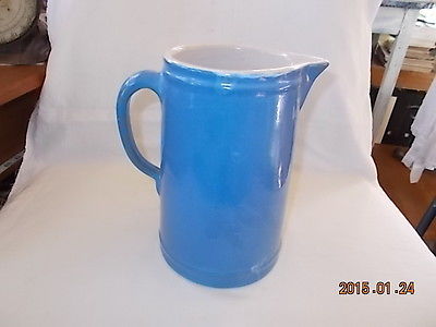 2-2015-BLUE GLAZED STONEWARE MILK PITCHER-EARLY 1900'S-9" TALL-LQQQKIEE