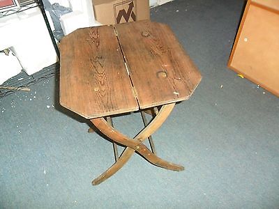 VINTAGE WOOD TABLE SMALL HANDMADE PLANT STAND FOLDS SHABBY DESIGN PRIMITIVE GUC