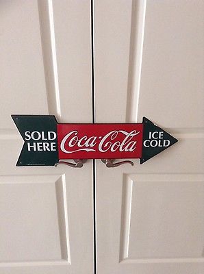 Ice cold sold here Coca cola arrow sign