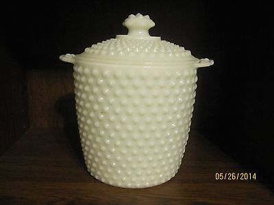 Anchor Hocking Fire King Hobnail Cookie Jar / Ice Bucket & Lid White Milk Glass