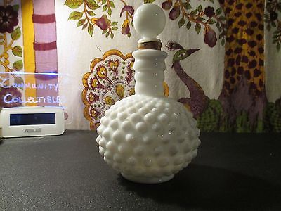 Title (ebay affiliate link): Vintage Fenton White Milk Glass Hobnail Perfume Bottle & Round Stopper with Cork