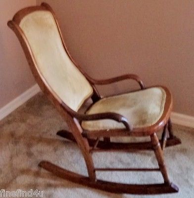 Title (ebay affiliate link): ANTIQUE GOLD VELVET OAK CURVE BACK SEWING ROCKING CHAIR