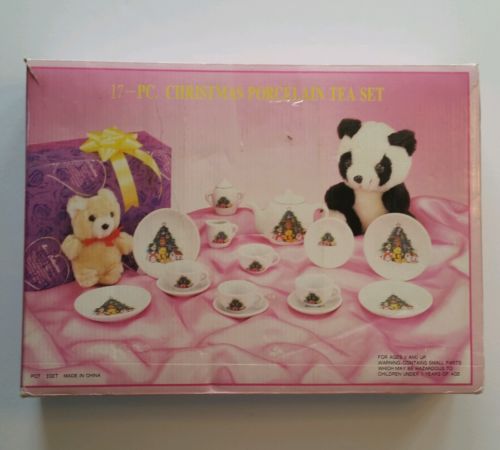 Title (ebay affiliate link): Porcelain Tea Set 17 PC Miniature Child's Christmas Teddy Bear