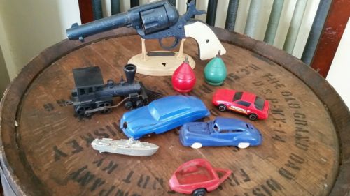 Title (ebay affiliate link): Plastic toy 60s-70s lot pistol, plastic cars train 2 wood tops boat Buddy Ideal