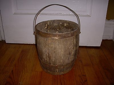 Title (ebay affiliate link): Antique Vintage Wood Wooden Bucket Metal Bands Original Patina Handle