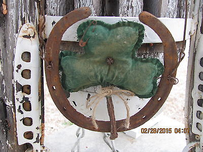 Primitive St. Patrick Shamrock Rusty Horseshoe Door Hanger Greeter Cupboard Tuck