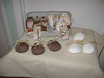 Handmade Primitive Fabric Eggs Bowl Fillers Brown and White w/tags Set of 12