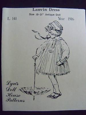 Antique Doll Pattern Lanvin Dress 19" - 21" Year 1916