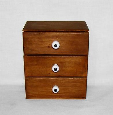 Title (ebay affiliate link): Antique Wooden Three Drawer Box w/Porcelain Knobs Child's Doll Furniture