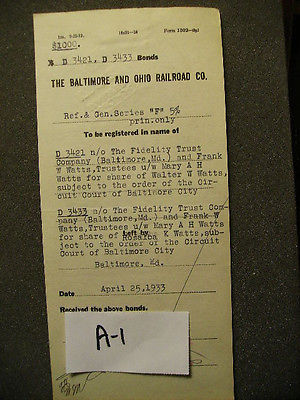 BALTIMORE & OHIO RAILROAD 1933 BOND FORM LOT A-1