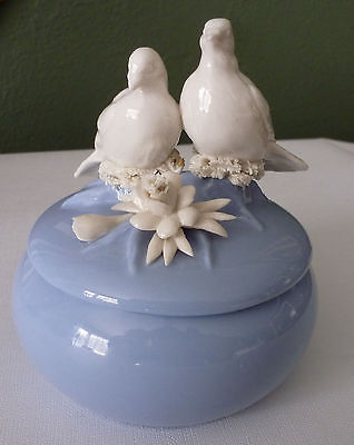 Capodimonte Italy Trinket Box / Birds / Blue and White / Signed