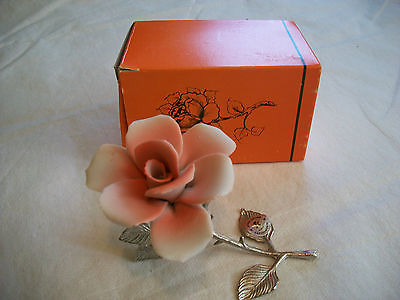 Vintage Capodimonte flower rose peach metal stem thorns Italy IOB