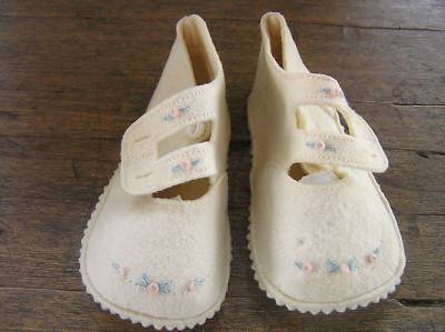 Antique Felt Rosette Baby Shoes