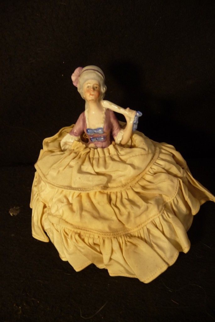 ANTIQUE CHINA DOLL PIN CUSHION GERMANY HALF DOLL