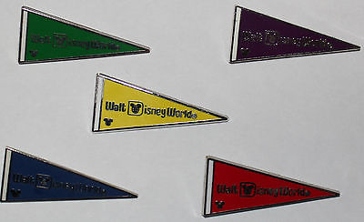 5 DISNEY PINS Trader Lot Walt World Banner Pennant green yellow blue purple set