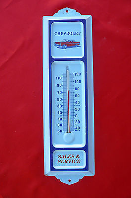 Rare Vintage Blue CHEVROLET Sales & Service Thermometer Advertising Sign 671