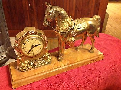 Vintage brass horse with electric clock