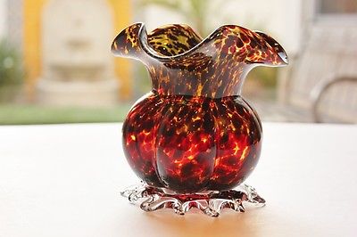 Antique Victorian Hand Blown Tortoise Shell Art Glass Cabinet Vase