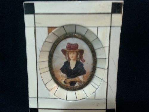 Title (ebay affiliate link): frame European okimono 19th C hand Painted plaque Lady bone Portrait Signed