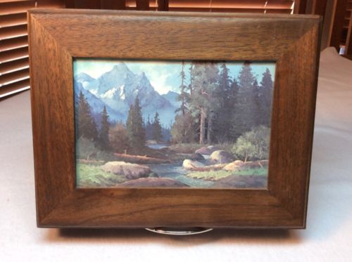Title (ebay affiliate link): Vintage Wood Trinket Jewelry Memory Keepsake Box Mountain Scene Dark Wood