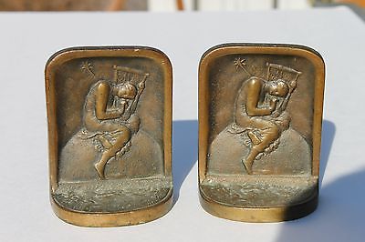 Solid Bronze "Lost Hope" Antique Bookends Rare Art Deco CIRCA 1900 - 1940