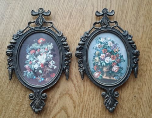Lot of 2 Vintage Gold Metal Picture Frames with Glass * Italy