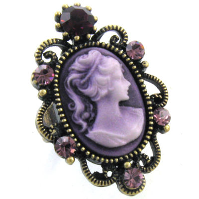 Luxury Antique Look Purple Cameo Crystal Ring Size Free