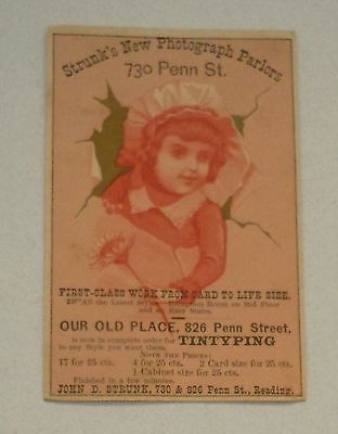 Strunk's Photograph Parlors, Tin Typing - Reading PA. Advertising Card