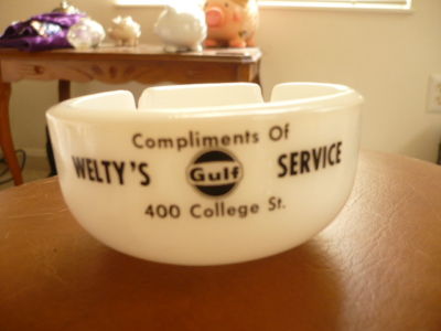 VINTAGE WELTY'S SERVICE "GULF" MILK GLASS ASHTRY