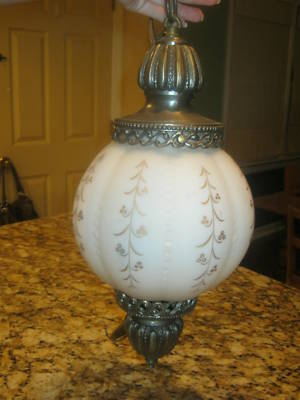 GORGEOUS VINTAGE LIGHT HANGING FIXTURE-MILK GLASS-GOLD