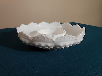Fenton 8" White Hobnail Milk Glass Chip & Dip/Candy Serving Dish/Bowl