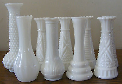 Lot of 9 Vintage Milk Glass Vases - Floral, Weddings