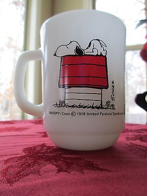 Title (ebay affiliate link): Fire King Milk Glass Mug I Think I'm Allergic to Morning 1958 Snoopy Doghouse
