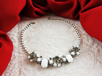 Title (ebay affiliate link): Gorgeous JULIANA D&E White Milkglass & Black Diamond Rhinestone 5 Link Necklace