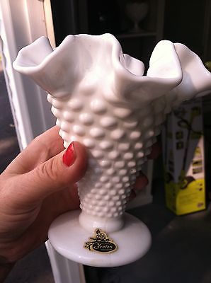 Title (ebay affiliate link): Vintage Fenton Ruffled Hobnail Crimped V White Milk Glass Vase 5 3/4" Tall