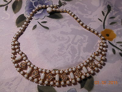 Vintage Juliana White Milk Glass & Rhinestone Choker Necklace Beautiful