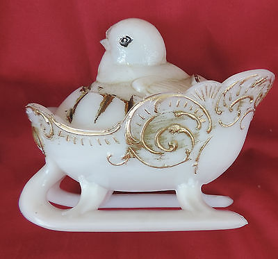 Westmoreland Milk Glass Chick Hatching from Egg on Sleigh