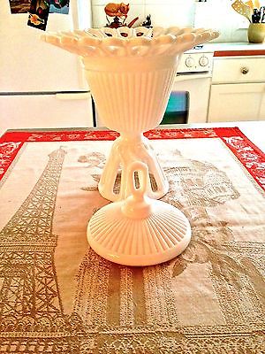 Title (ebay affiliate link): Vintage Fenton Milk Glass Pedestal Bowl & Lid with Scalloped & Weaved Pattern
