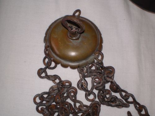 antique victorian smoke bell and long chain for hanging oil lamp.