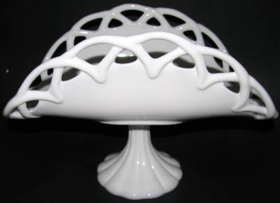 Westmoreland Milk Glass Curved Open Lace Banana Bowl