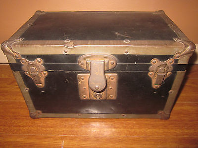 VINTAGE TIN METAL TREASURE CHEST BASSETT ANTIQUE 9.75" JEWELRY BOX STORAGE OLD