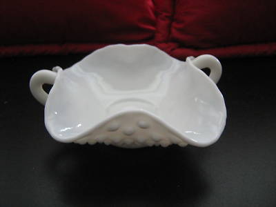 VINTAGE FENTON White Milk Glass HOBNAIL Handled Bowl EX