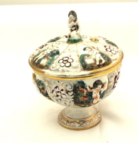 Title (ebay affiliate link): Capodimonte Hand Painted Candy Dish with Cupid Made in Italy