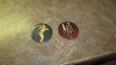 Lot 2 VINTAGE 1940-1960 CELLULOID ADVERTISING POCKET MIRROR NUDE RISQUE GIRL