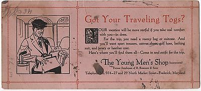 1920-1930s The Young Men's Shop, Frederick MD Advertising Blotter Rosenour Sons