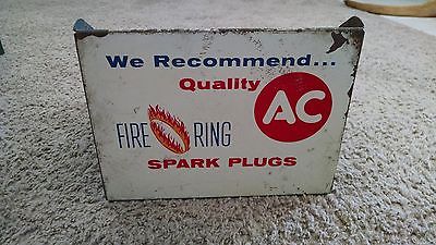 Original Vintage AC Fire Ring Spark Plugs Metal Rack or Sign Car Truck Tractor